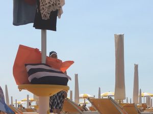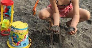 Con voi dovranno per forza esserci: 4 costumi asciutti, 3 cappellini, 2 cambi completi, 8 creme solari di diverse gradazioni, un numero che tende ed infinito di pannolini, salviette e fazzoletti, millemila giochi da spiaggia, lo spuntino, l’acqua, un asciugamano e un poncho asciugamano…