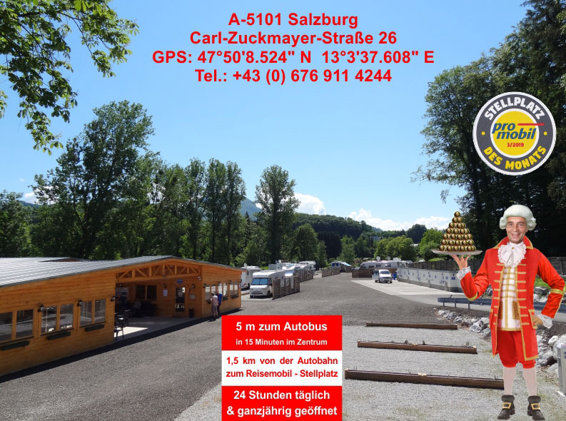 A Salisburgo non ci sono dei veri e propri parcheggi solo per camper, ma è consentita la sosta diurna in alcuni parcheggi della città, lungo la strada.